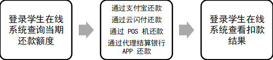 11 月 1 日(最后一年为 9 月 1 日)以后,登录学生在线系统,查询还款当期还款额度。系统用户名为借款学生身份证号,如果忘记密码可拨打 95593 重置。