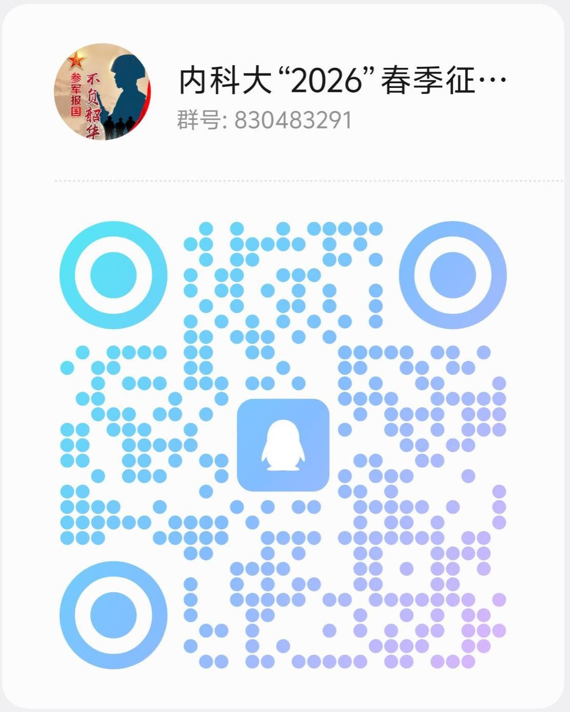 加QQ群方法:搜索群号830483291(群名为:“内科大2026年春季征兵交流群”),或扫描QQ群二维码(附件2)。