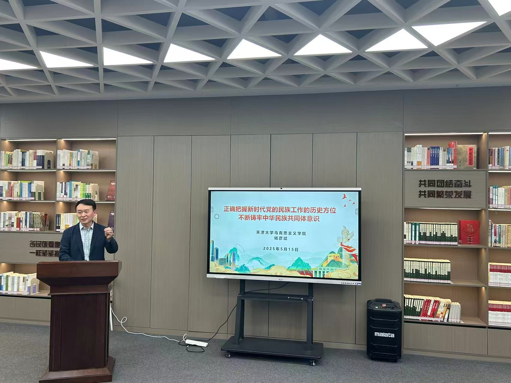 本次座谈会特邀马克思主义理论博士后、研究生导师、天津大学马克思主义学院杨彦斌教授作题为《正确把握新时代党的民族工作的历史方位 不断铸牢中华民族共同体意识》的主题讲座,同学们全神贯注,现场学习氛围浓厚。各学院学生代表和校青马班学员就学习内容开展交流座谈。化学与化工学院忻雨彤同学表示“用心感受了这片土地的发展伟业”;马克思主义学院康景妍同学分享“以青春之火点燃团结之光”的感悟;材料科学与工程学院薛雪冰同学表示“我深刻感受到这一伟大理念在我们心中的生根发芽”;能源与环境学院宗政儒同学表示“要汲取思想伟力,努力奋斗,绽放属于科大人的芳华”。